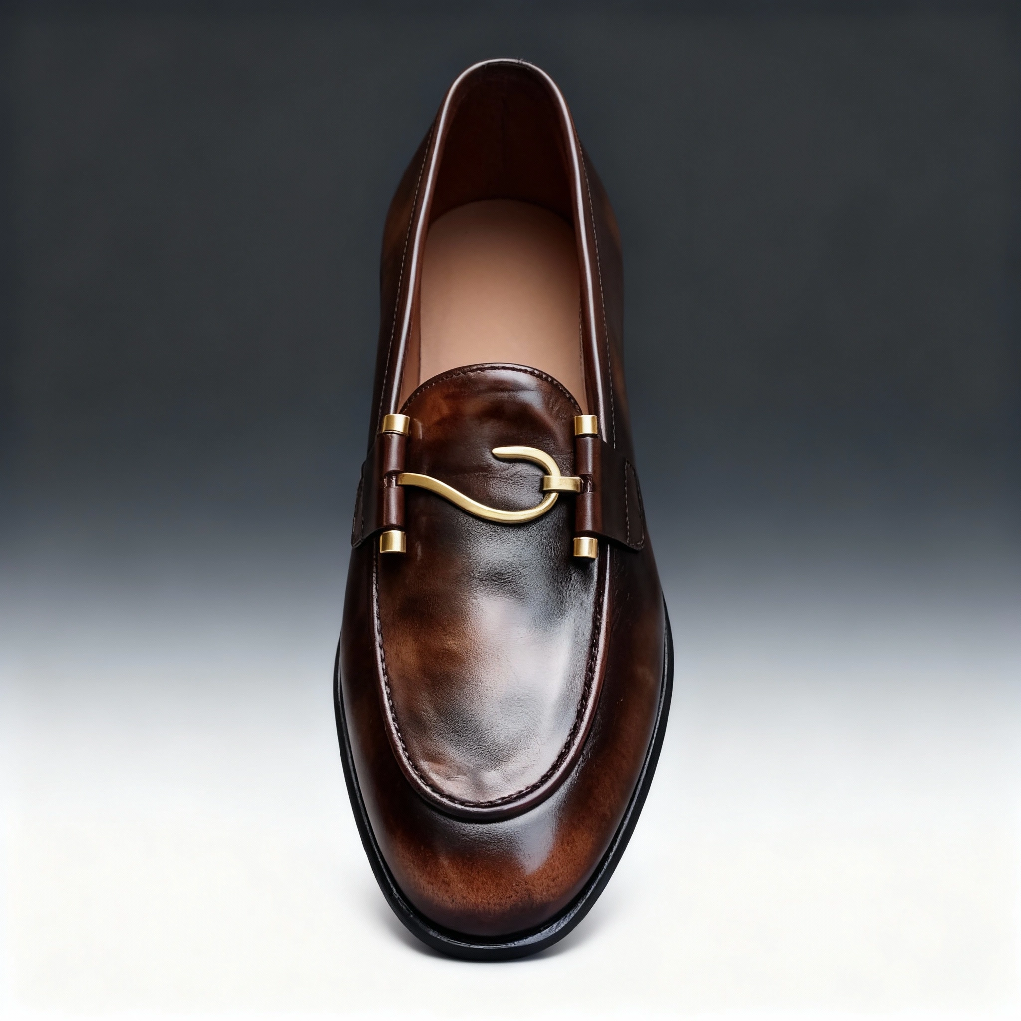 Design: Classic Loafer with a sophisticated Apron-Toe and Polished Gold Horsebit
